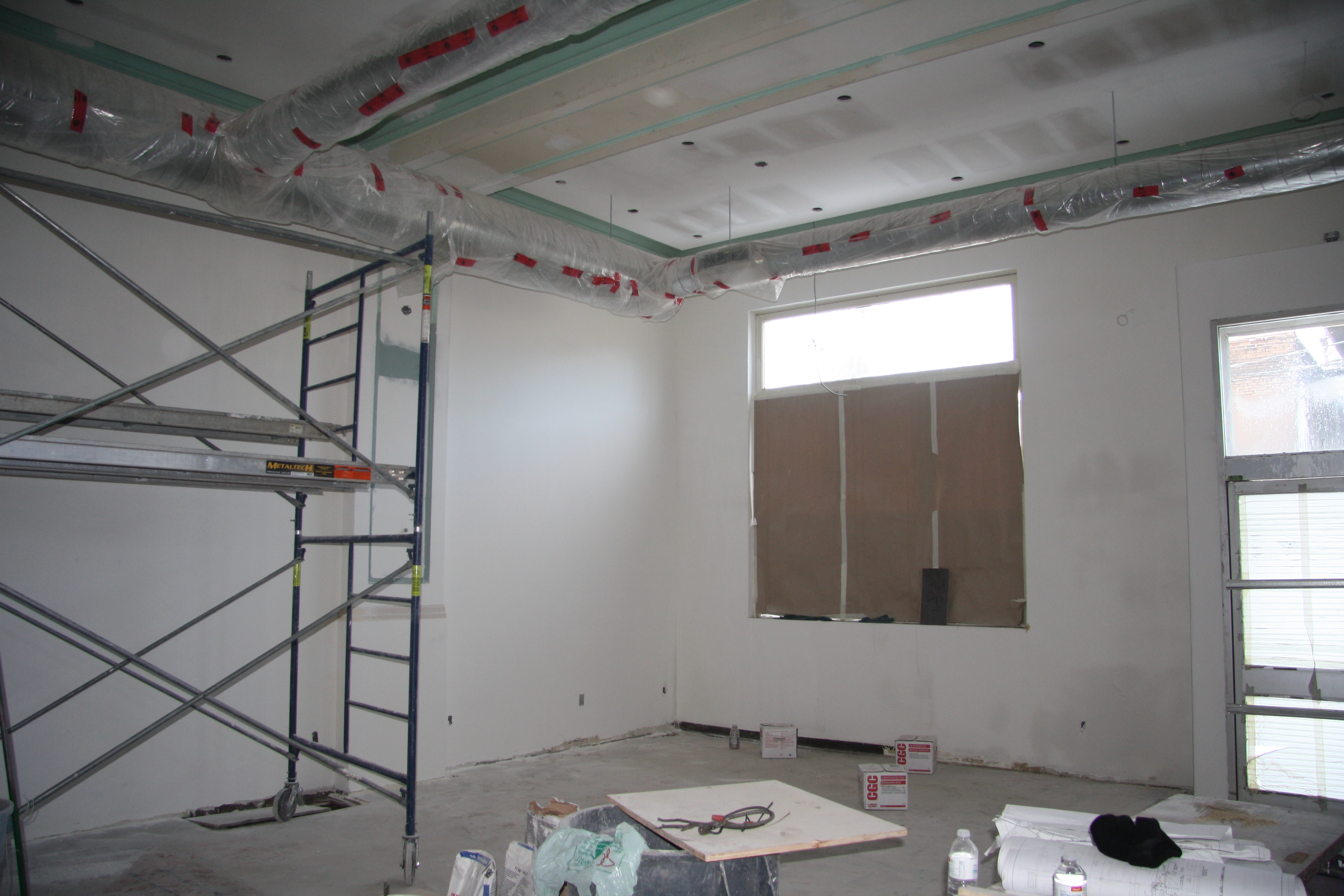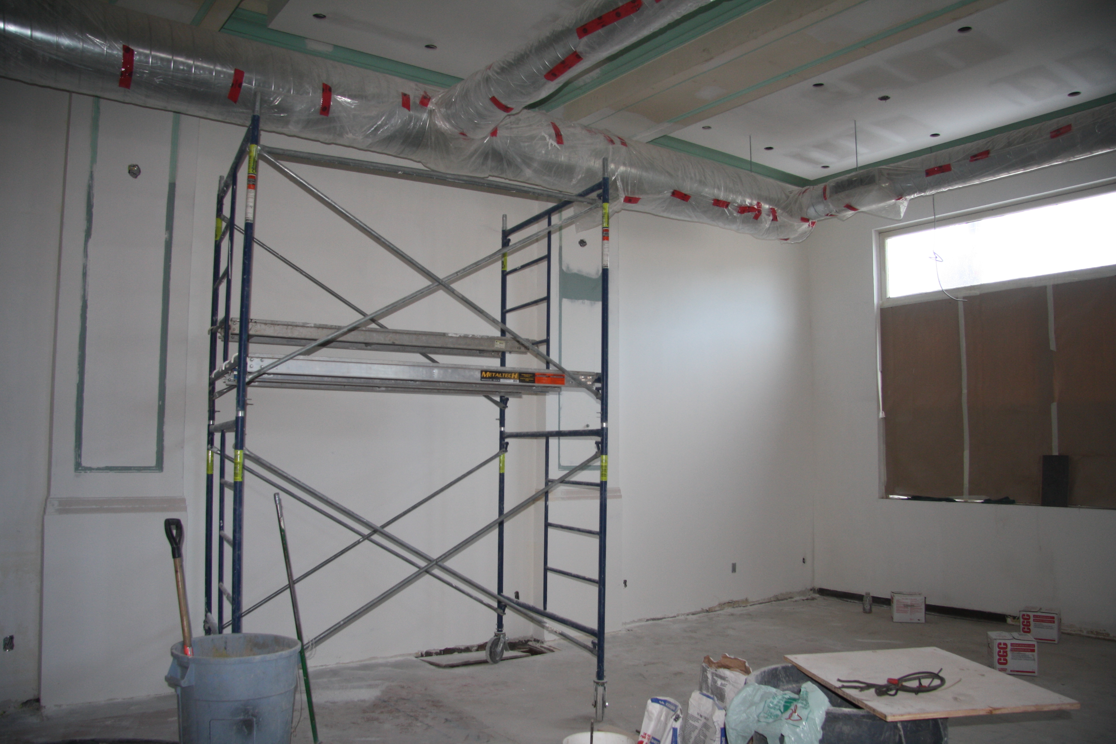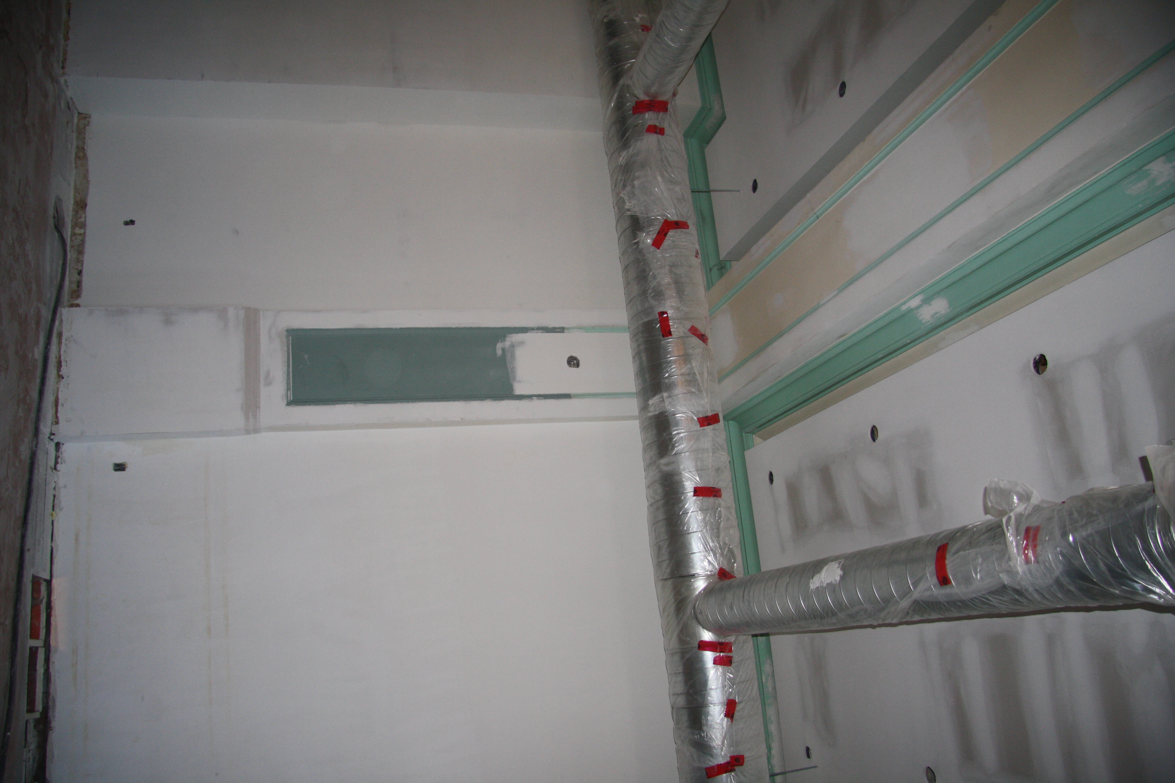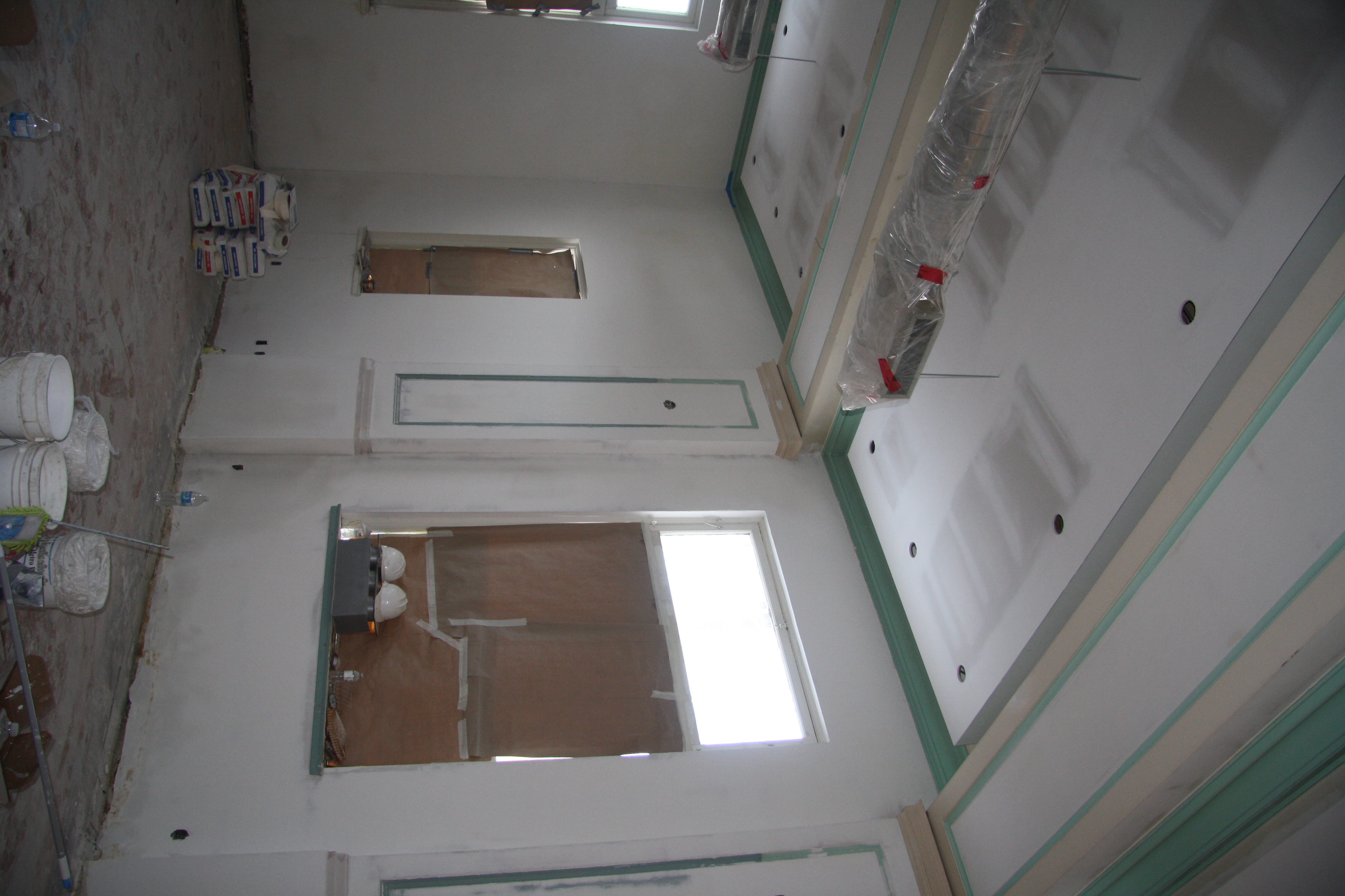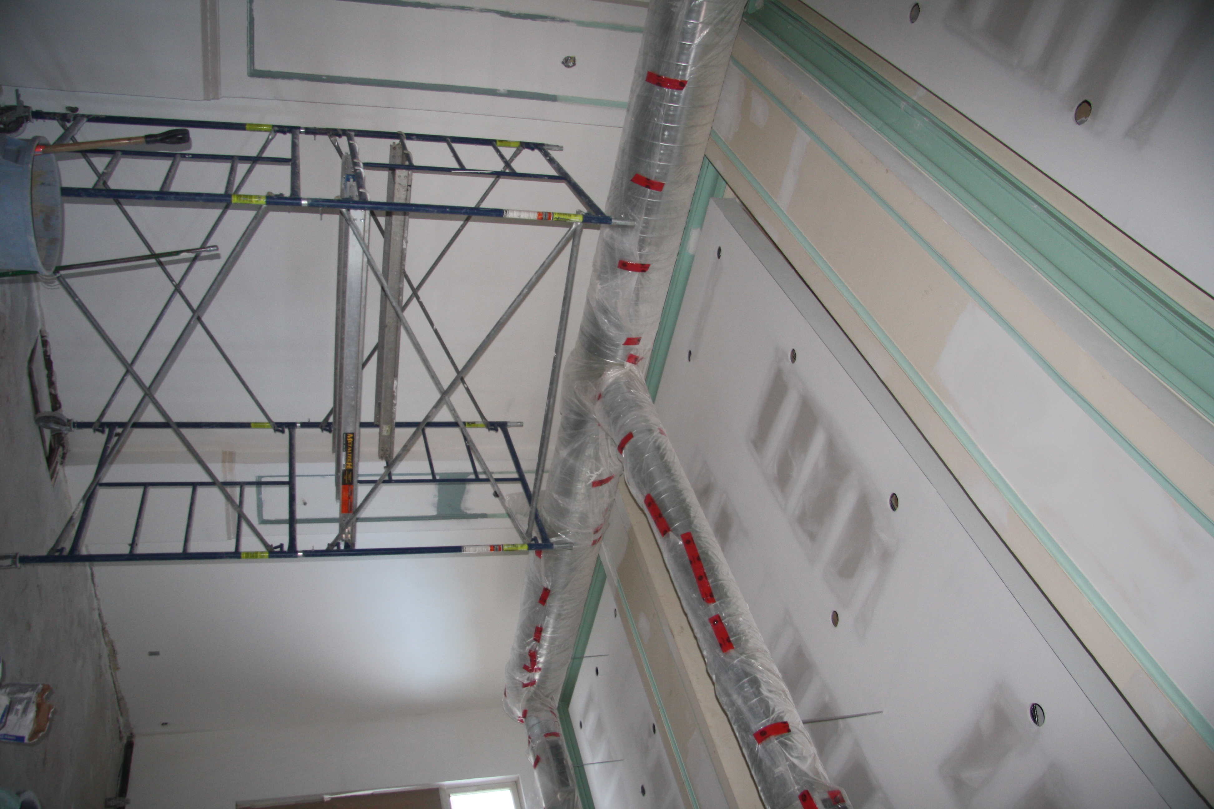 Currently, most interior walls in the U.S. are constructed with 4” to 6” studs that are covered with sheetrock. The seams of the sheetrock or gypsum board are taped and finished with a joint compound and the ceiling and wall may be texturized with a joint compound using one of various techniques. All drywall is ultimately finished with an application of primer and paint.