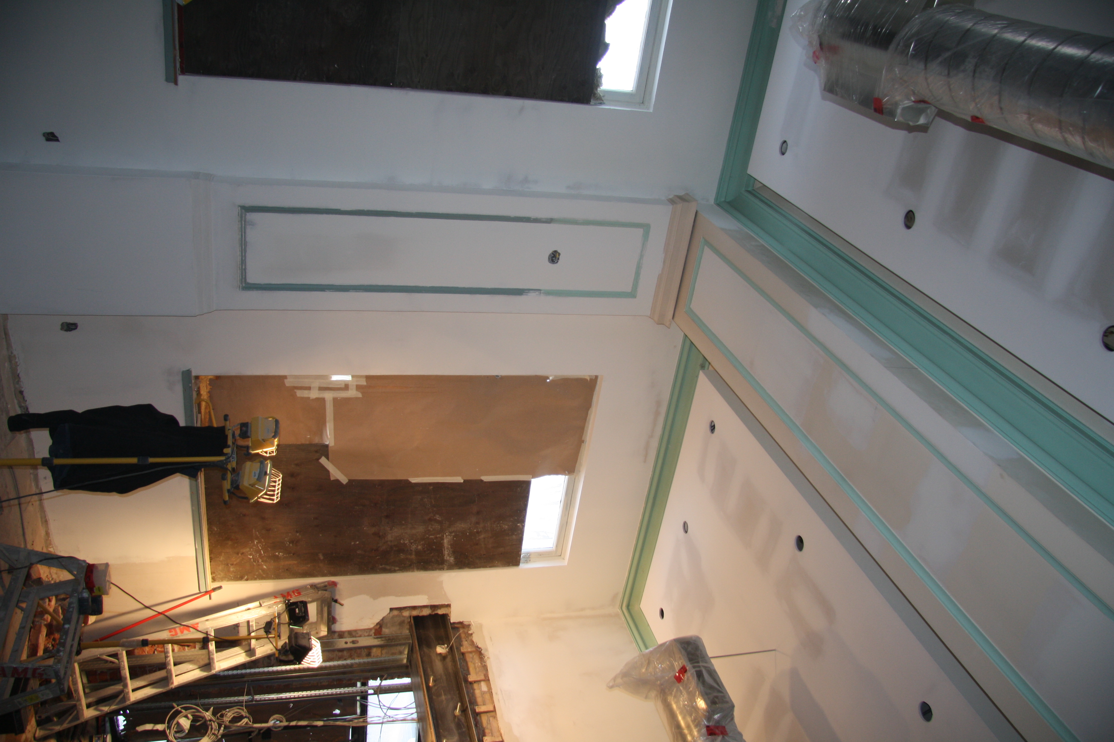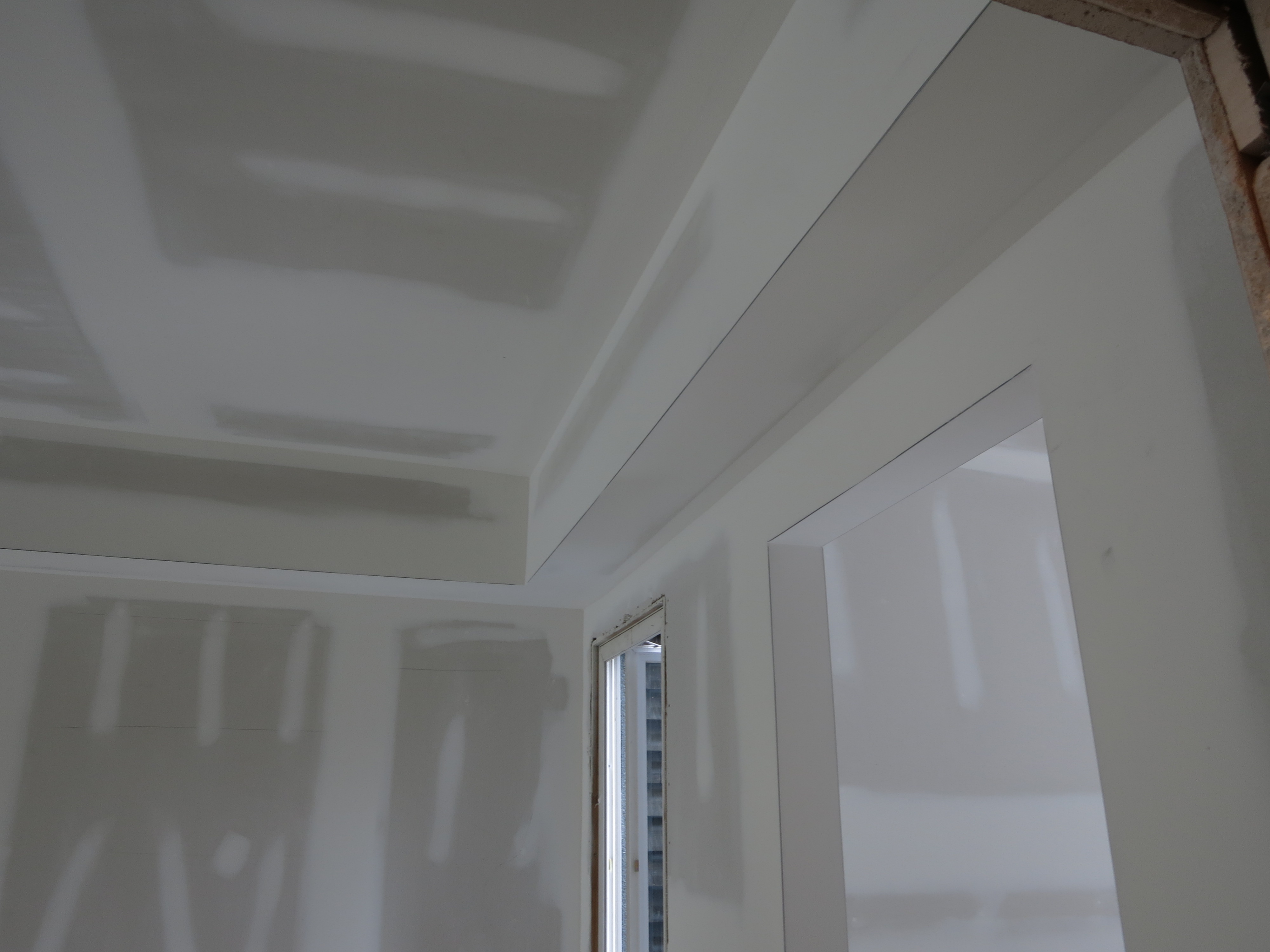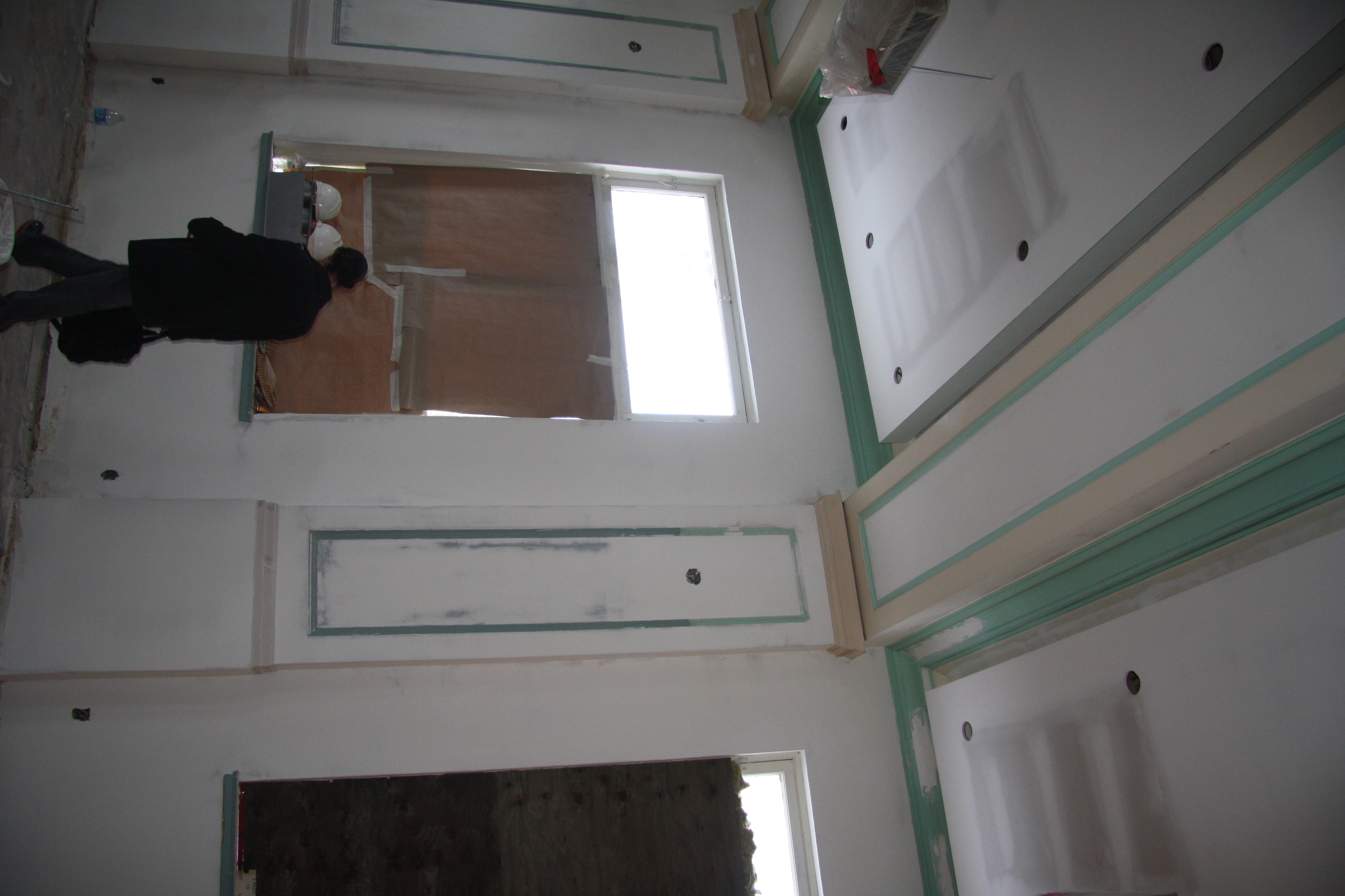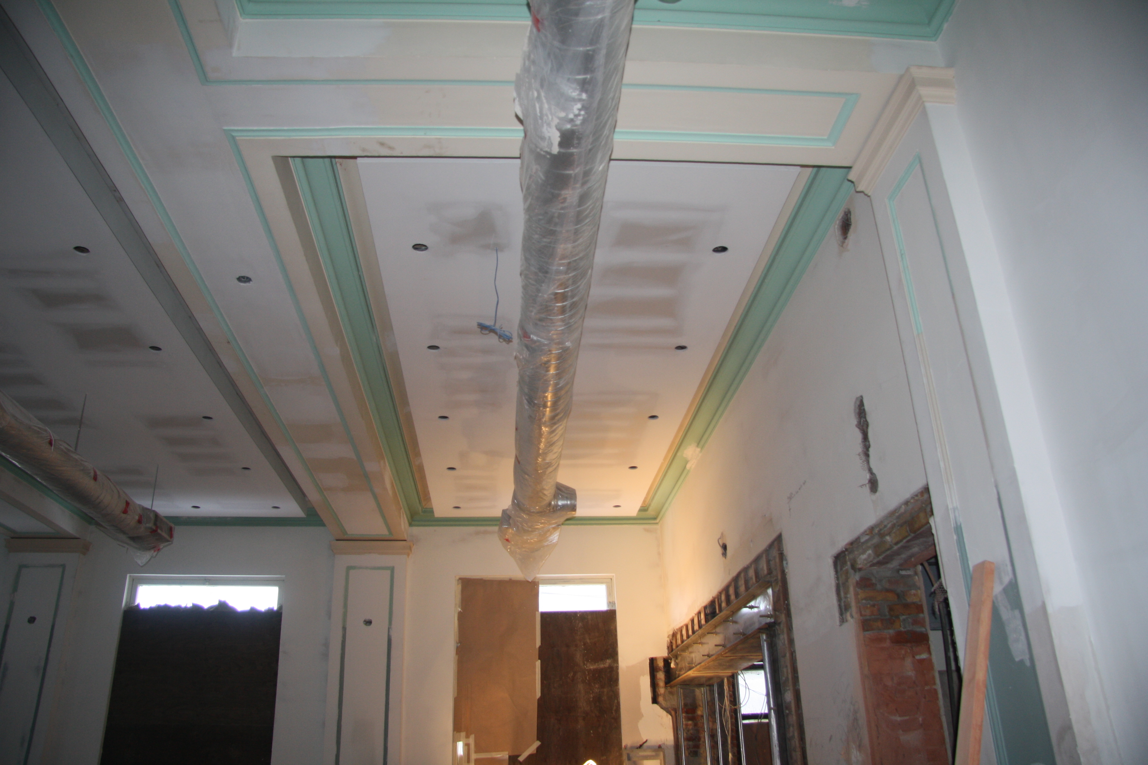 Currently, most interior walls in the U.S. are constructed with 4” to 6” studs that are covered with sheetrock. The seams of the sheetrock or gypsum board are taped and finished with a joint compound and the ceiling and wall may be texturized with a joint compound using one of various techniques. All drywall is ultimately finished with an application of primer and paint.