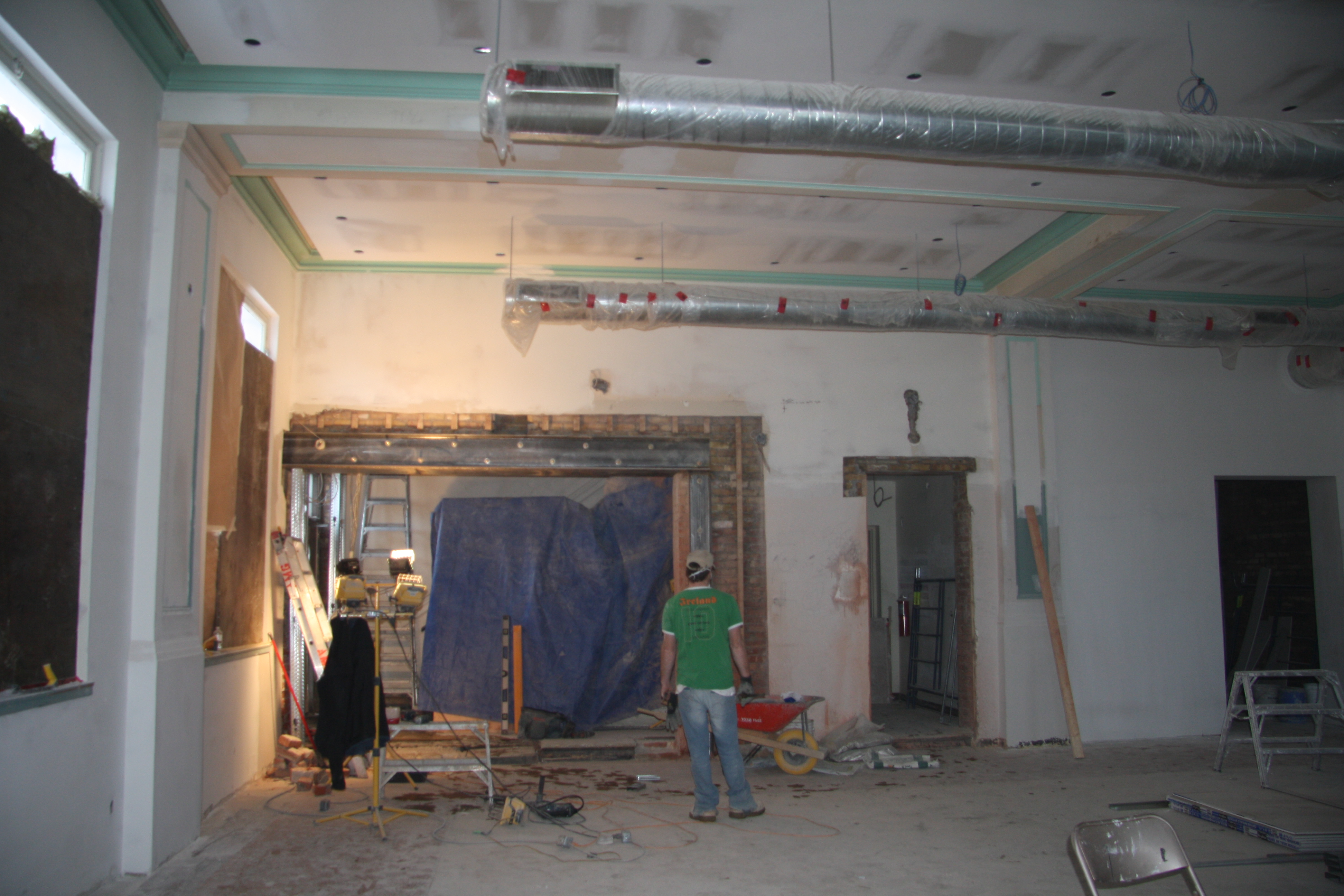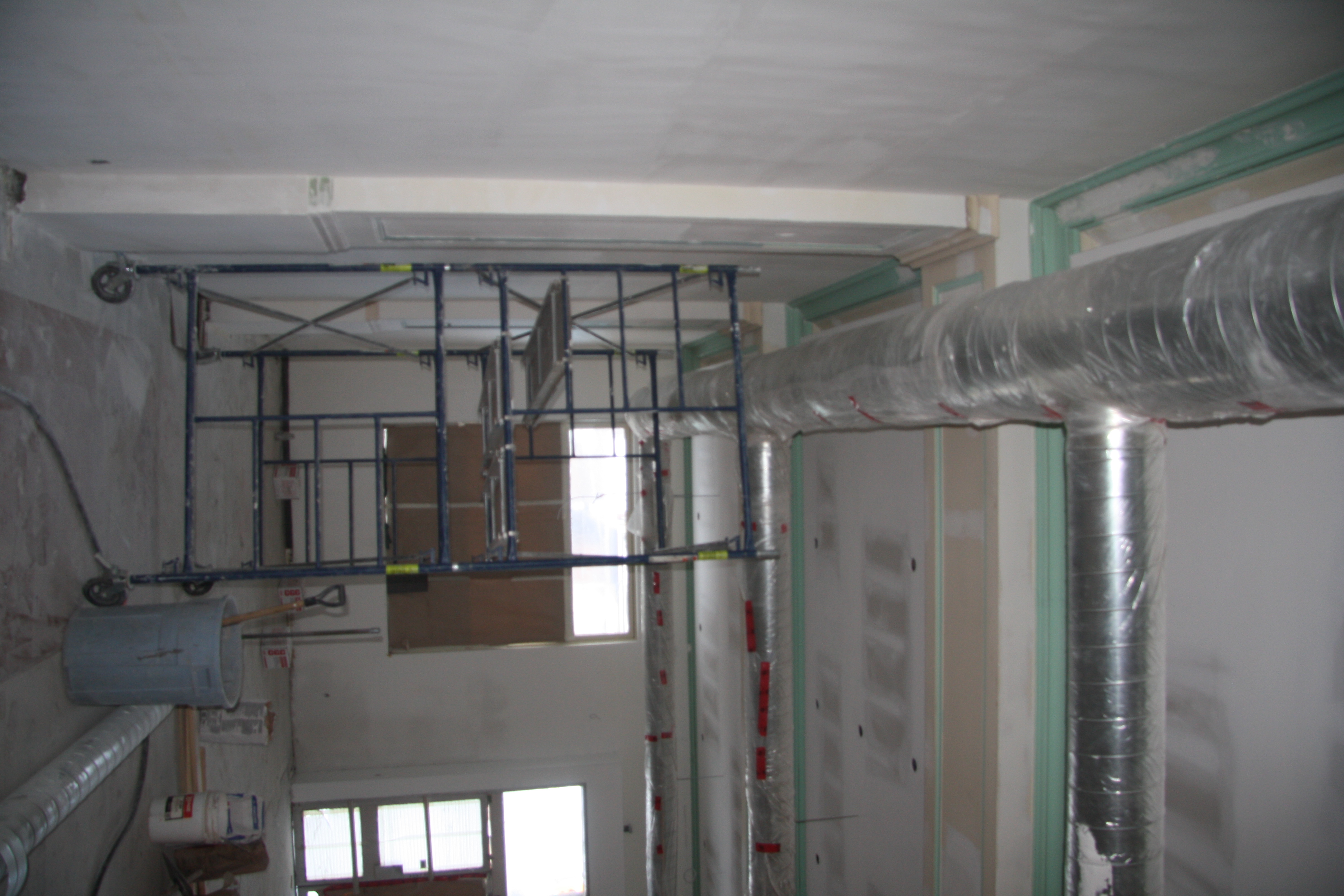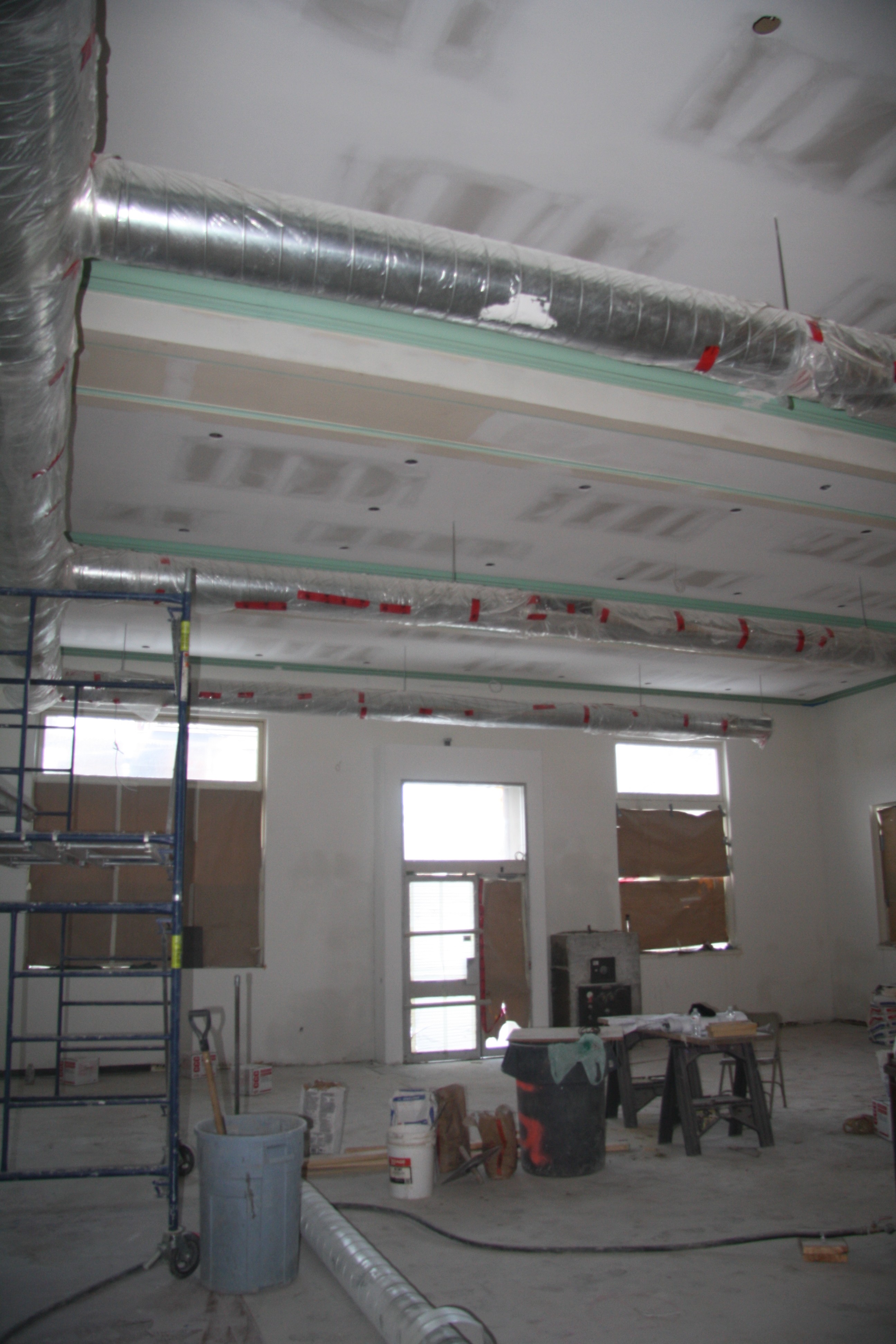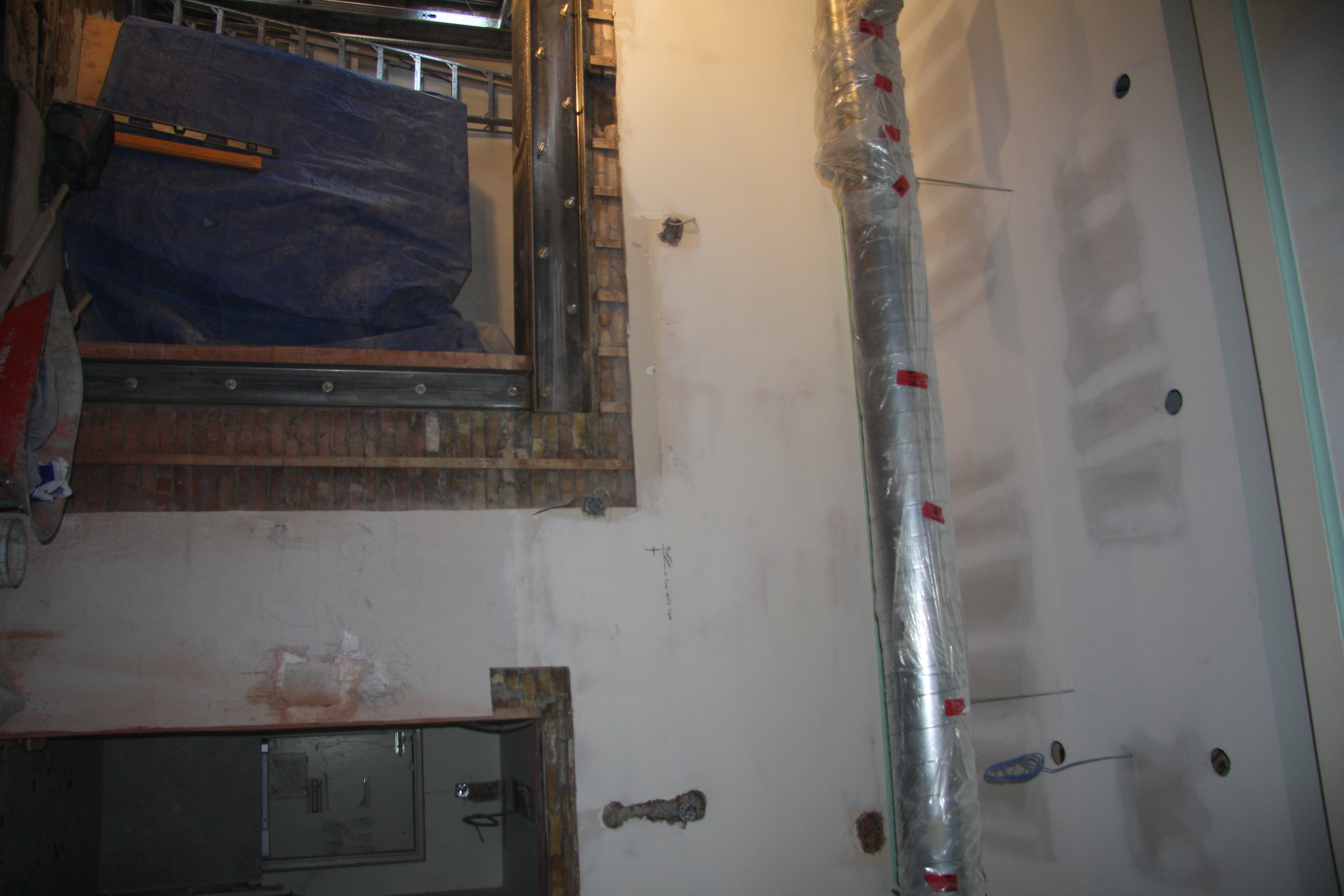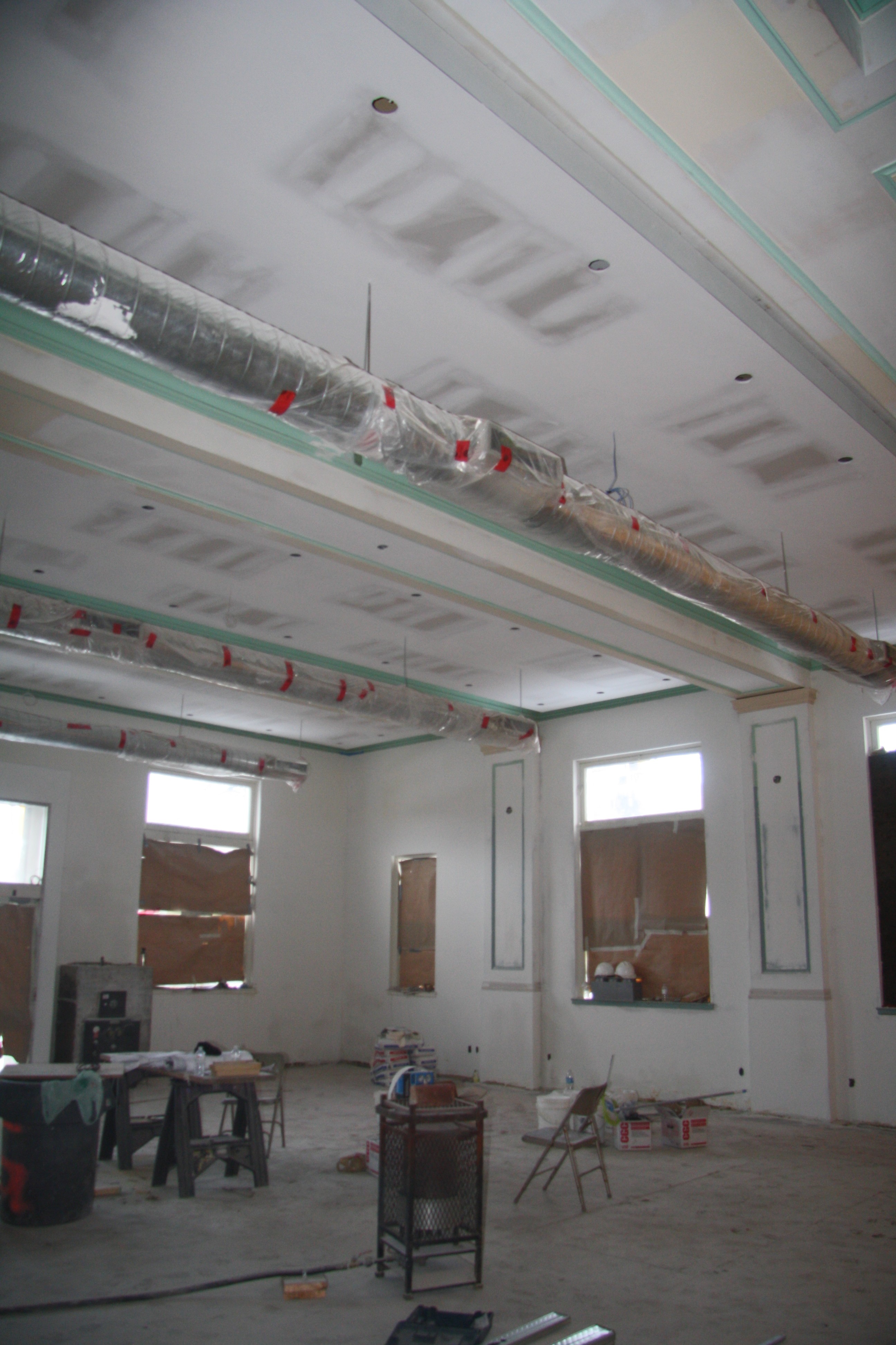 Currently, most interior walls in the U.S. are constructed with 4” to 6” studs that are covered with sheetrock. The seams of the sheetrock or gypsum board are taped and finished with a joint compound and the ceiling and wall may be texturized with a joint compound using one of various techniques. All drywall is ultimately finished with an application of primer and paint.