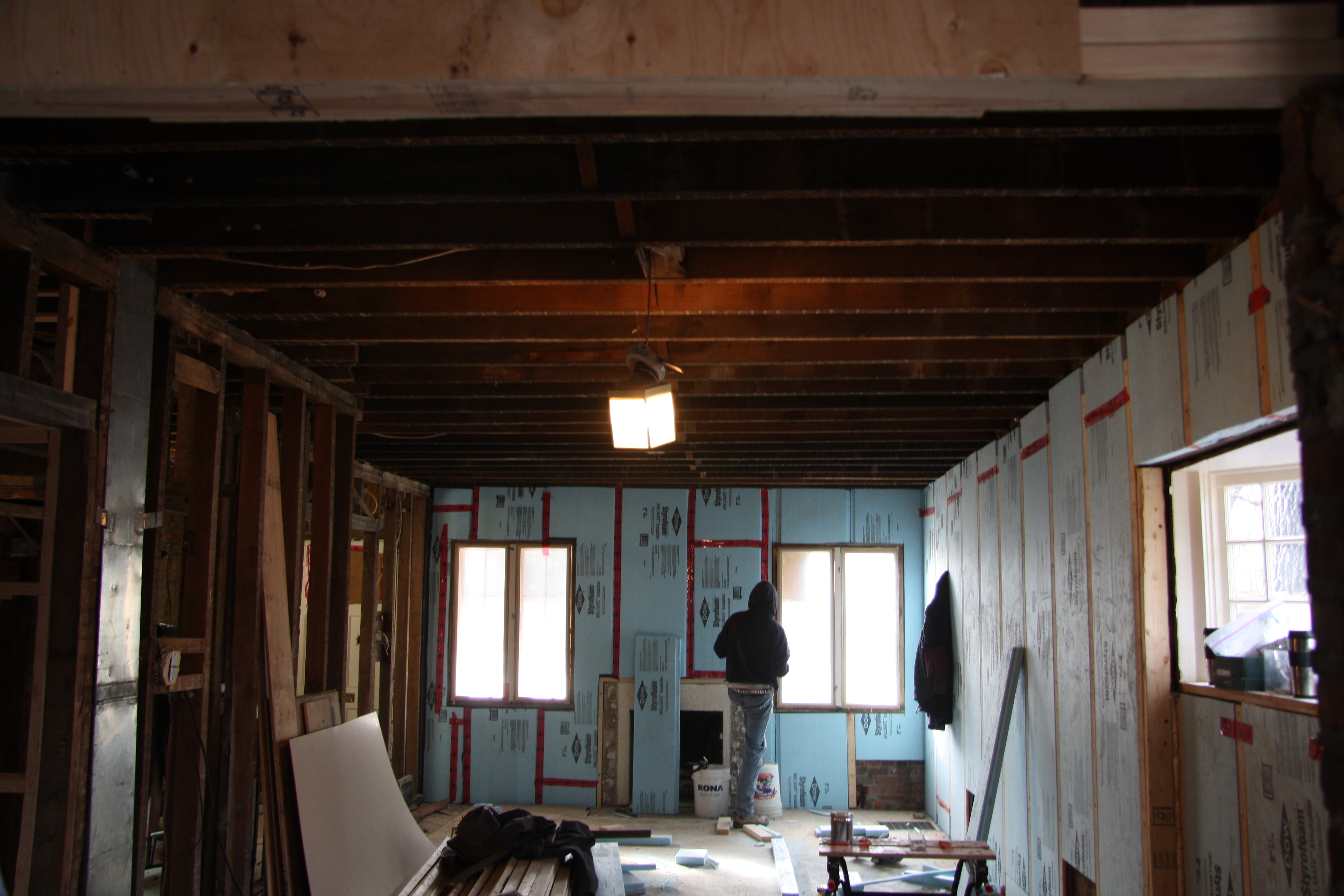 This is a house with second floor addition, so we have some renovation job as well as new construction drywall installation and taping.