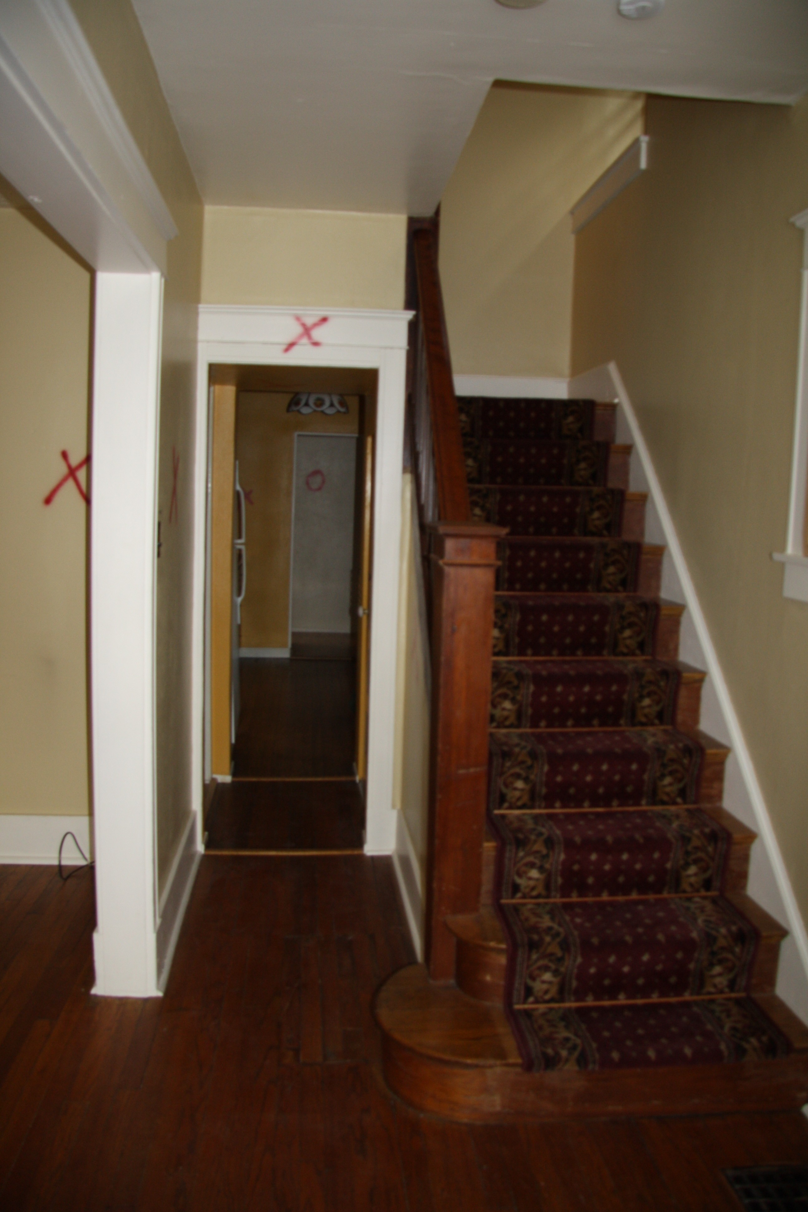 · Hallway and Staircase from second floor to first floor —skim cote on plaster 1st Floor: